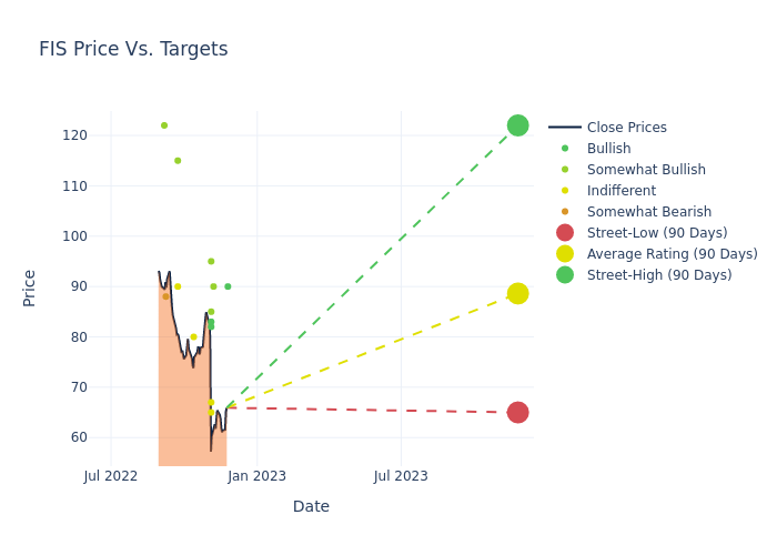 According to 19 analyst offering 12-month price targets in the last 3 months, Fidelity National Info has an average price target of $94.63 with a high of $122.00 and a low of $65.00.