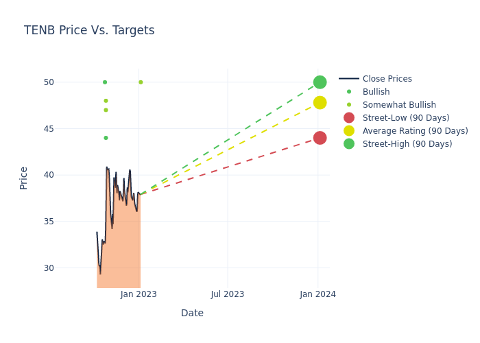 According to 7 analyst offering 12-month price targets in the last 3 months, Tenable Holdings has an average price target of $48.29 with a high of $55.00 and a low of $44.00.