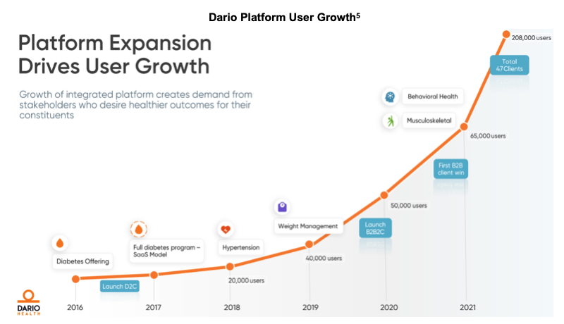Over the last several months Dario has added many new clients in the remote patient monitoring (RPM), national employer, global employer, health plan and other categories as it continues to advance its B2B2C initiative. As of its last update, Dario had signed 47 clients, with an acceleration in count that builds on its recent acquisitions of Upright Technologies and wayForward. The number of users on Dario’s platform has grown significantly and consisted of more than 208,000 members at the end of the second quarter. We anticipate that this number will grow substantially, especially in the first quarter as 25 of the announced closed contracts are anticipated to launch.