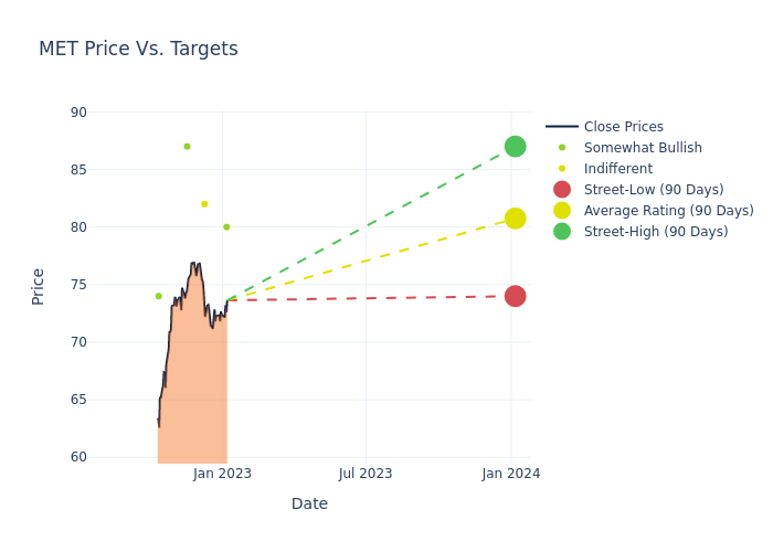 Within the last quarter, MetLife (NYSE:MET) has observed the following analyst ratings: