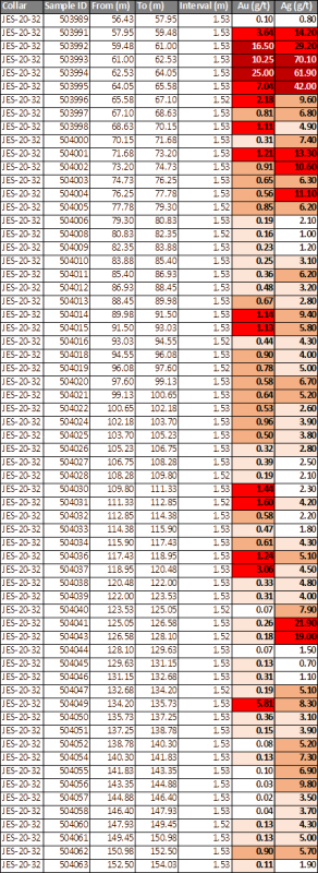 Figure 1. Cross-Section of Drillhole JES-20-32