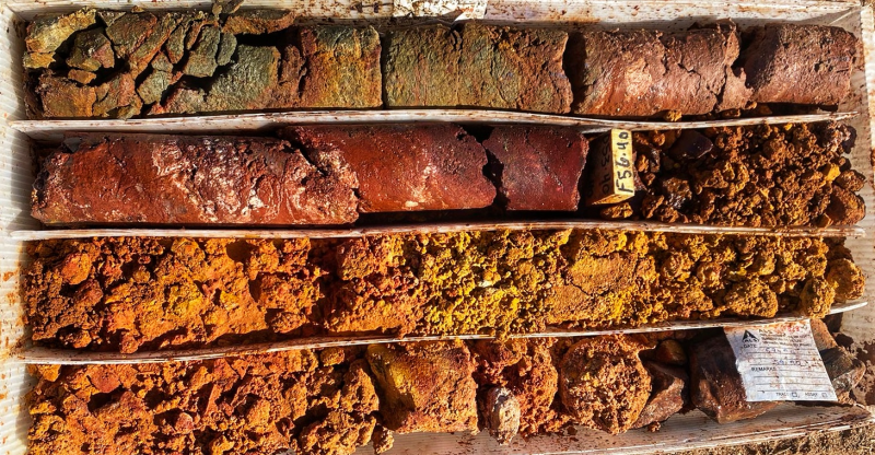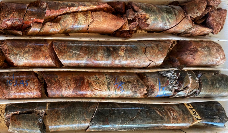 Core drilling (JES-22-59) has been successful in intersecting a heavily oxidized and fractured mineralized breccia in a twin hole of RC drill hole JES-20-32, completed in 2020 (94.6m at 1.6g/t Au). The strongest mineralization noted in JES-20-32, at 9.2m of 10.8 g/t Au and 38 g/t Ag correlates with a strongly oxidized, brecciated andesite bounded by a distinct fault gauge. Mineralization appears to be primarily hosted in an intensely silicified breccia with pyrite and in select areas copper sulphides (chalcopyrite and cuprite) (see Plates 1 & 2.). Assay results for JES-22-59 are pending. This information will be integral to the planning and design of future drill programs and will provide a more accurate account of the distribution of grade through the Main Zone, helping to define a reliable geological model and future resource estimate. At the Main Zone, four drill holes have been completed to date totalling 684 meters.