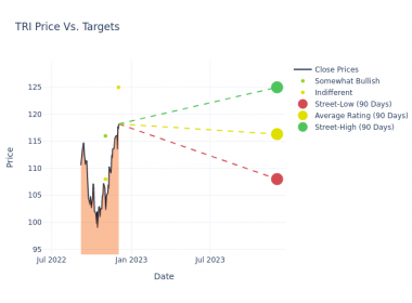 Read More 1 minute read Analyst Ratings Expert Ratings for Thomson Reuters By Benzinga Insights Today, 2:04 AM Thomson Reuters (NYSE:TRI) has observed the following analyst ratings within the last quarter: Bullish Somewhat Bullish Indifferent Somewhat… TRI