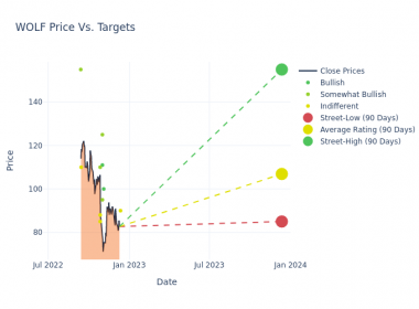 Shares of Wolfspeed are trading down 17.89% over the last 24 hours, at $87.40 per share.